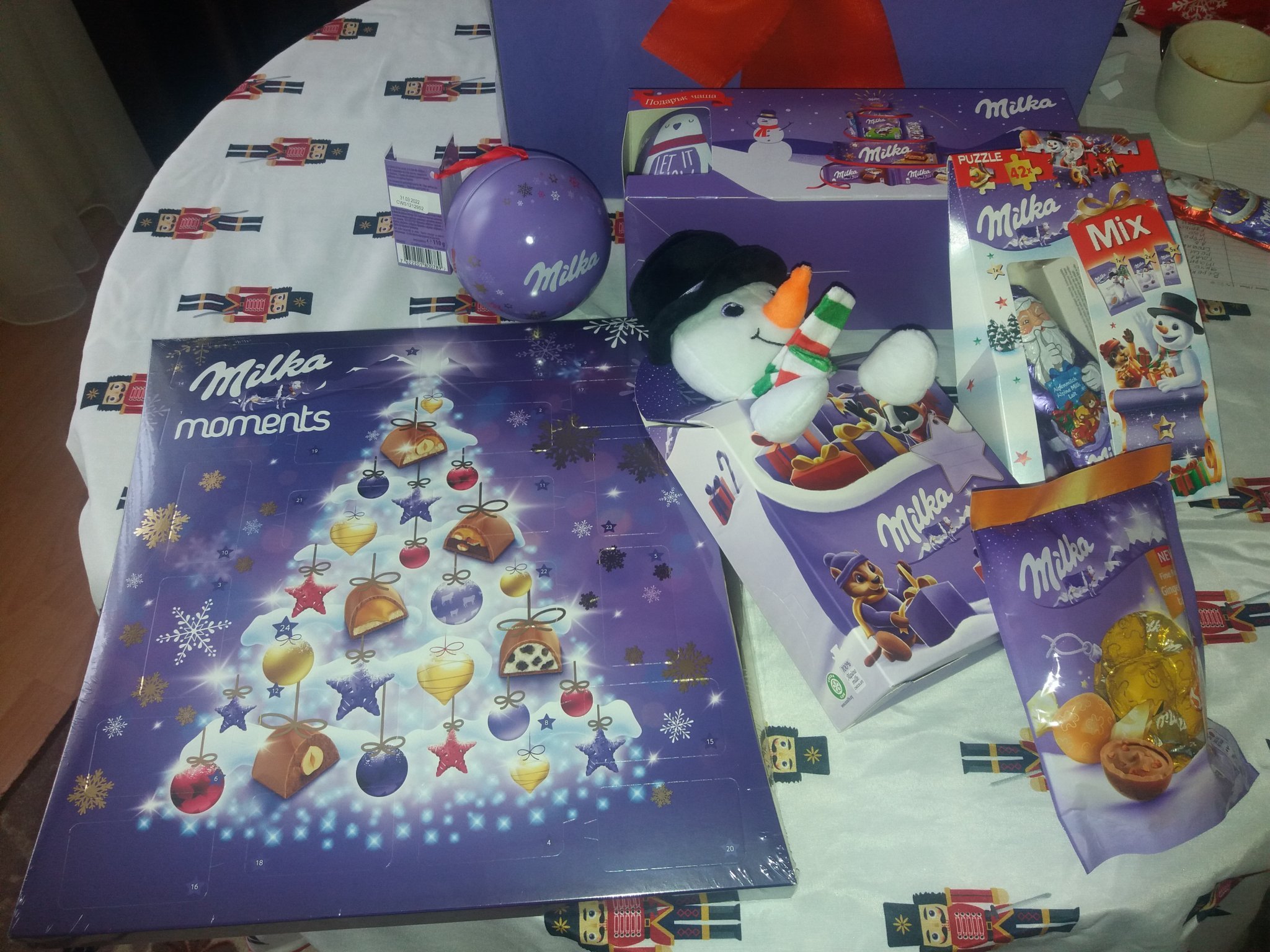 Днес в кварталния магазин взех 3 шоколада Милка и ми дадоха да си избера подарък - играчка за елха или шапка. Не съм срещала тази "игра" и се изненадах