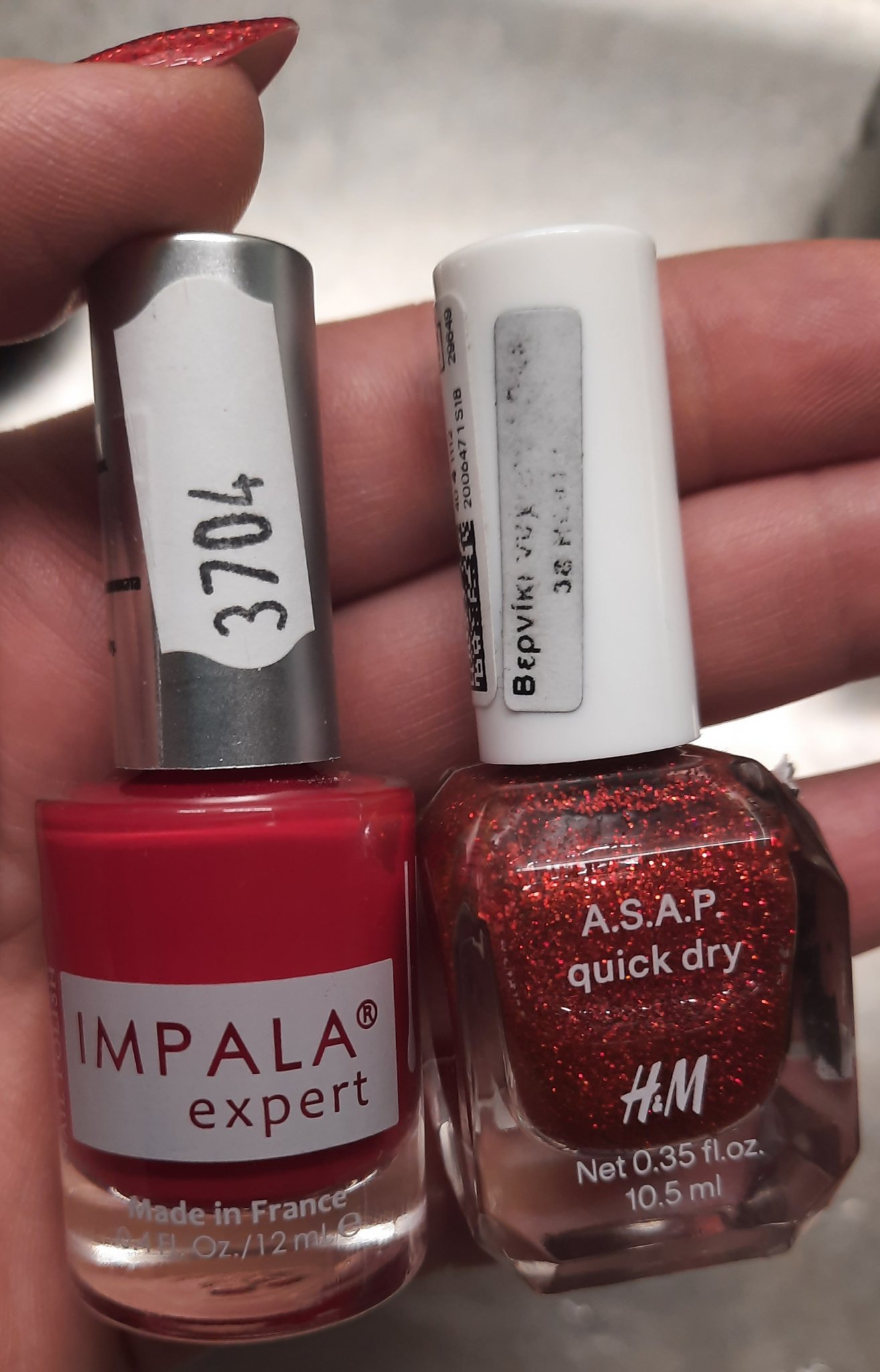 На живо Импала 05 е по-ярко червено, а брокатът е с холо частички под определена светлина, но на снимки се вижда толкова☺: