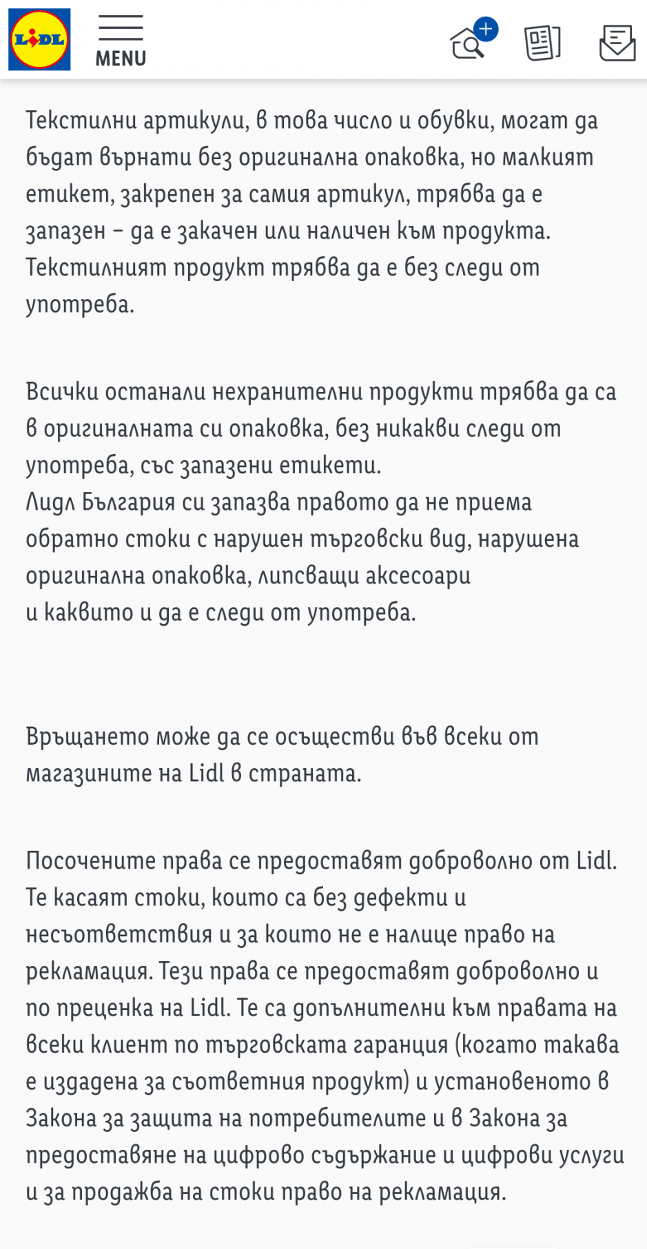 "Касаят стоки за които не е налице право на рекламация"- вероятно това е "вратичката" за която се хващат...🤔 Ок, ще се замислям още по-добре преди да купувам още по-голям асортимент от стоки. 😁 Последното ми връщане беше с мотив "Не се хареса". Това пишеше на касовата бележка.