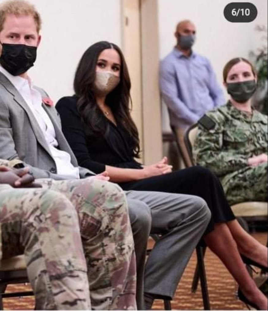 По време на посещението във военната база, една от служещите е подарила специална монета-медал на Меган в знак на признателност за това, което Хари прави за ветераните