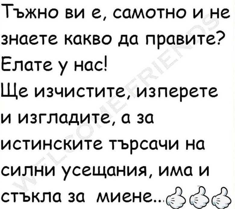 - Щом ти е било хубаво, значи си бил с чужда жена и сега си мислиш за нея.