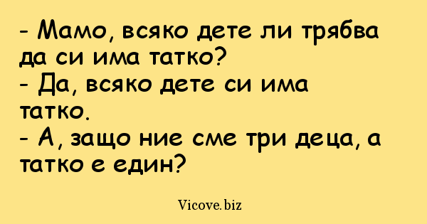 - Ами, мамо, как да ти кажа, запознах се с едно момче, той ме целуна, после ме пипна по онова място и аз хубаво си сложих ръката, ама той туй някак между пръстите ми го набута...