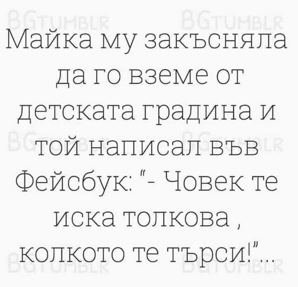 - "Бре пъ съ съобразева, бе. Нема да ни омаскари детето".