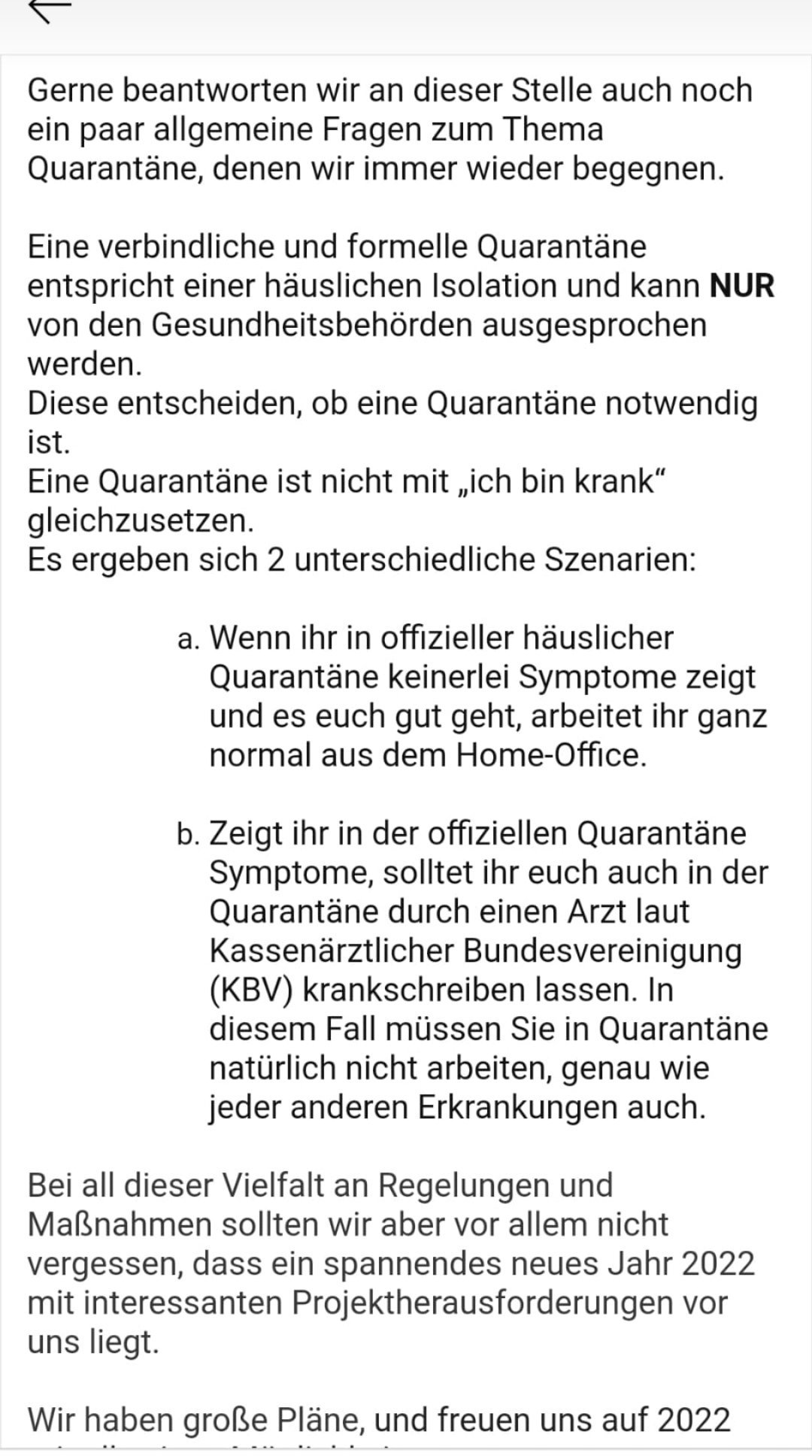 За карантина, която е behördlich, т.е. имам предвид наредена заради контакт, и в нашата фирма беше така, че си работиш в хоум офис, т.е. и в нашата провинция е такава разпоредбата явно. Hands Plus1