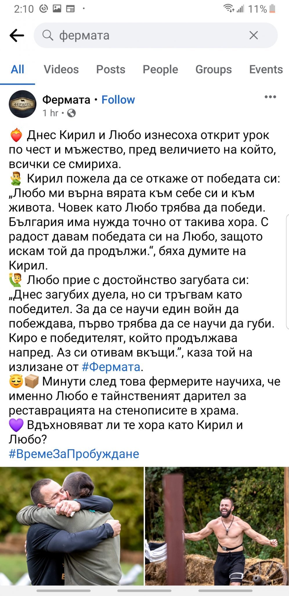 Киро имаше възможност да предаде урок по достойнство още миналата седмица, като удържи на думата си и се махне от Фермата, както обеща! Женицата зад кадър защо не каза нищо по въпроса тогава??? С тези зле написани текстове с очеИЗвадни внушения удряте дъното! Не сме прости да се вържем на съшитите ви с бели конци постановки, и ще го разберете на финала! Толкова съм разочарована от този сезон, че не мога да го изразя с думи! Величаете до абсурдност един пропаднал човек, един агресор, безбожник, с прогнила душа! Този ли ще ни преподава уроци??? Жестът на Любо пък е напълно обезсмислен от мишкарското му поведение през целия сезон! Един достоен човек не се натиска по кюшетата да сплетничи, не се възхищава на пропаднали персонажи като Кирил и Мартина! А и цялата работа около Любо, Теодора, пари, купони, специално отношение...ужасно много СМЪРДИ!!! Дано съвестта ви е чиста пред зрителите!