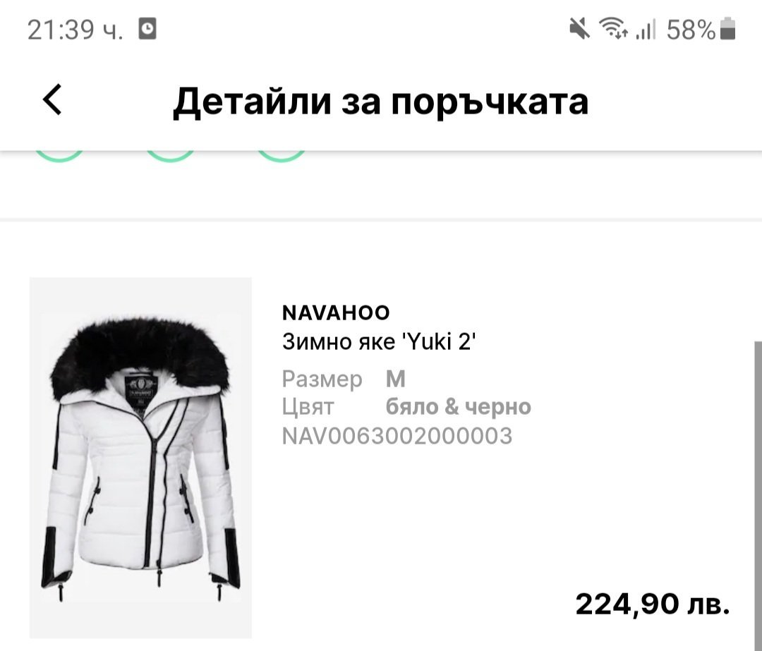 И моето яке дойде, но ми е малко,  а така хубава цена му направих с кода 160 лв.