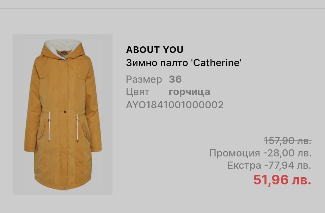 Да, само че съм хвърлила око на едно палтенце, което го има само в about you в момента, и, разбира се, в официалния сайт на Манго Disappointed