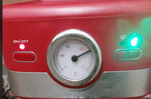 Докато машината загрява за пара, кафе в ръкохватката не трябва да има. Разпенваш млякото, изпускаш ненужната пара от вентила и чак после правиш кафе- когато индикаторът, че е готова за кафе, светне.