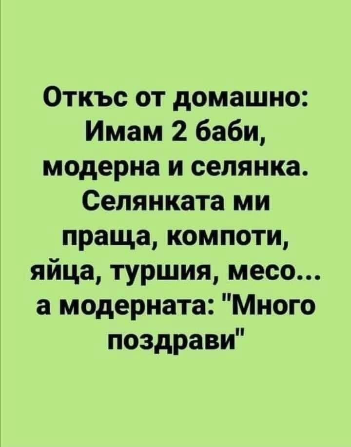 На мойто дете, милото, и двете баби са му модерни. Обаче свекърва ми си идва другата седмица и я чакам като малко дете дядо Коледа, не се е прибирала от година и половина.