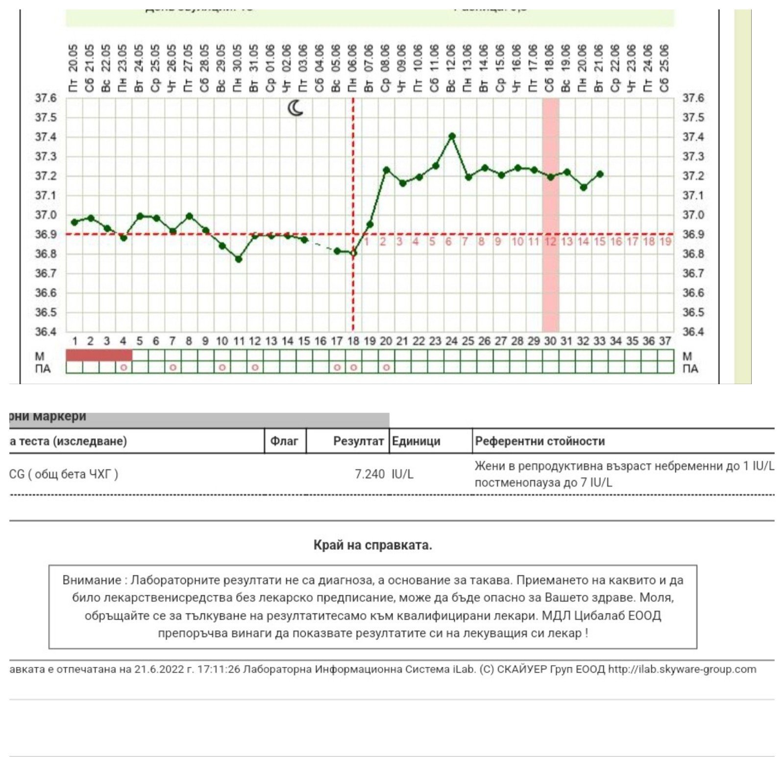 Прилагам графиката си до днес. Все още няма цикъл, тест с урина - отрицателен.