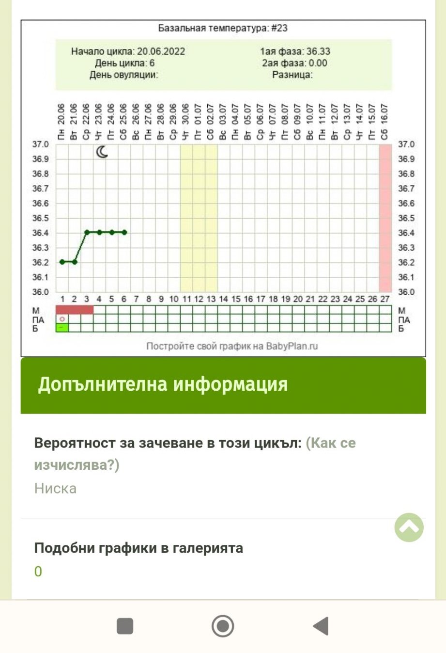 Какво може да означава спадът във втората половина на графиката на базалната температура?