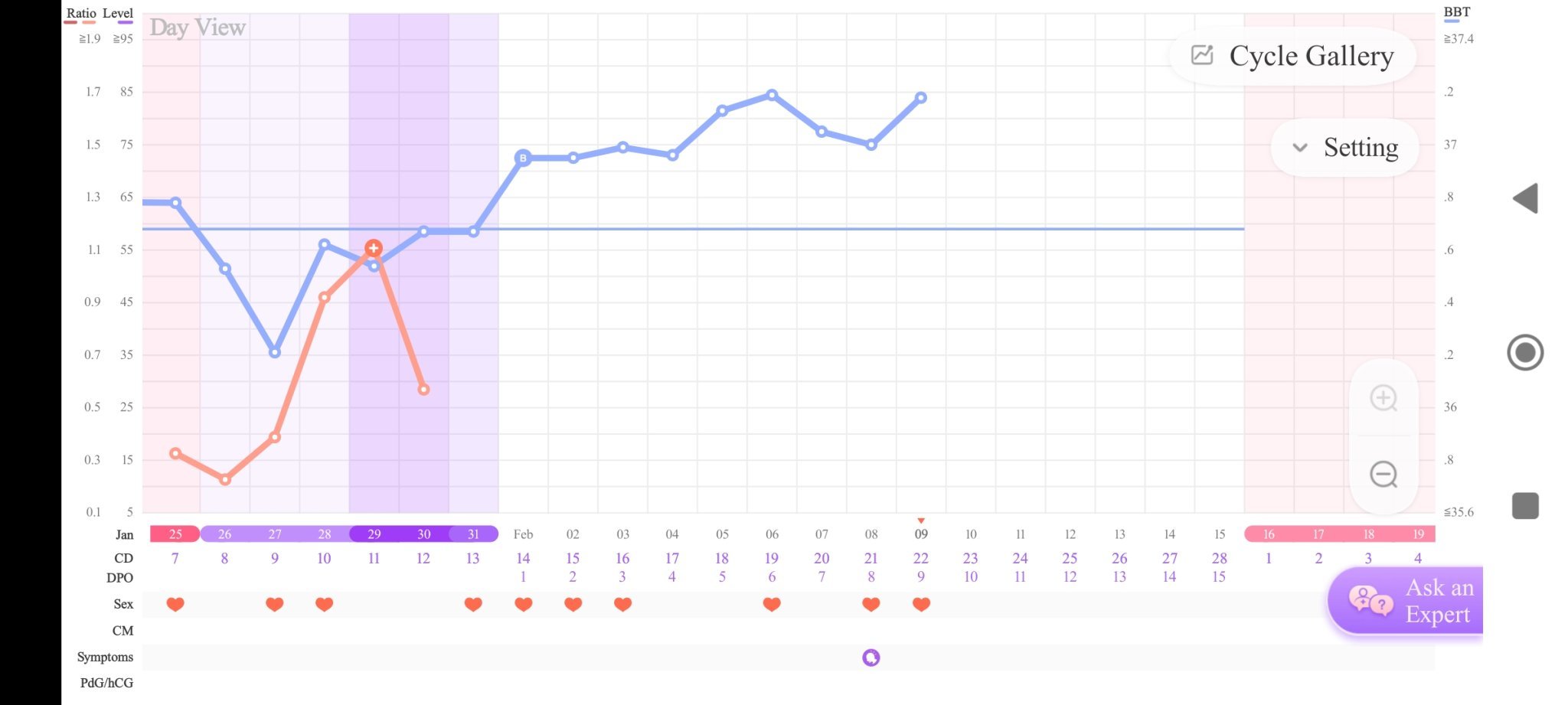 Ако е имало О., може да е била ( засега) на 16/17 или на 19/20 ден от МЦ, но БТ трябва още да се повиши и да се задържи висока. Прави и тестове за О., защото с тях + БТ , О. се определя по-точно.