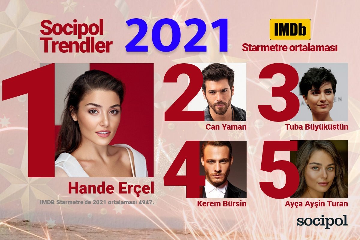 Според @socipol_data през 2021 г. средно #IMDb Starmetre, Ханде се класира на 1-во със средно 4947, а Керем се класира на 4-то място със средно 7275 сред повече от 11 милиона имена по целия свят