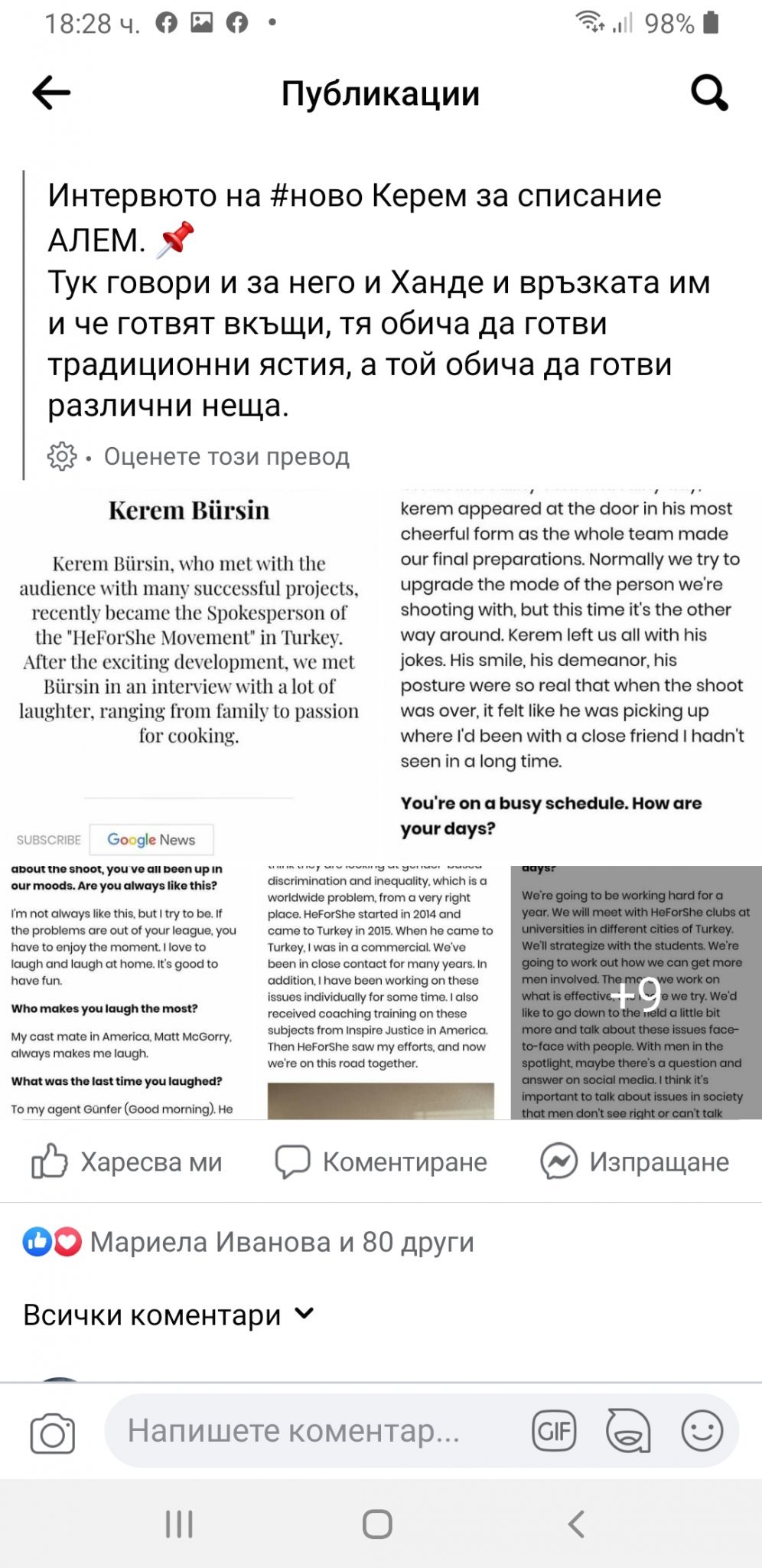 Сещате ли се сега, как реагирах лично аз, след онова интервю на Керем в предаването HeForShe. Точно това очаквах като последствия. Тези негови думи да се използват манипулативно. Надявам се Ханде да не се повлияе, защото това може само да им охлади отношенията. Тя е разумно момиче и вярвам че ще постъпи правилно в тази ситуация.