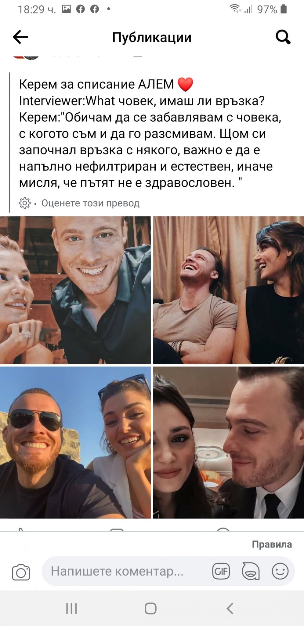 Що се отнася до другото ще кажа, че до голяма степен фенската маса също е виновна за тези слухове. На журналята това им е работата да задават въпроси, те стоят в мрежата и четат коментари в Туитър, Инстаграм, фейсбук и т.н. Ето сега пак има коментари към Керем да прави деца, да не се стеснява и тем подобни глупости със смеещи се емотиконки. Кому е нужно това? Да не говоря за постоянните фотошопи със сватбени рокли, предложения за брак и бебета в ръцете му - Абсолютно неуважение за мен. Та това са лични неща, кой им дава право на тези да се намесват в интимното пространство на хората. Говоря по принцип, не за Керем и Ханде, Ами ако тези хора имат някакъв проблем не дай си Боже как ще се почувстват виждайки това... Всичко това веднъж завинаги трябва да спре. Ама надали. Разни блогърчета също постоянно си измислят разни новинки, които после винаги се оказват лъжа. Спрете се. Оставете ги намира. Дали ще се женят, дали ще раждат деца - Това е тяхно решение, техният живот, Не Вашият