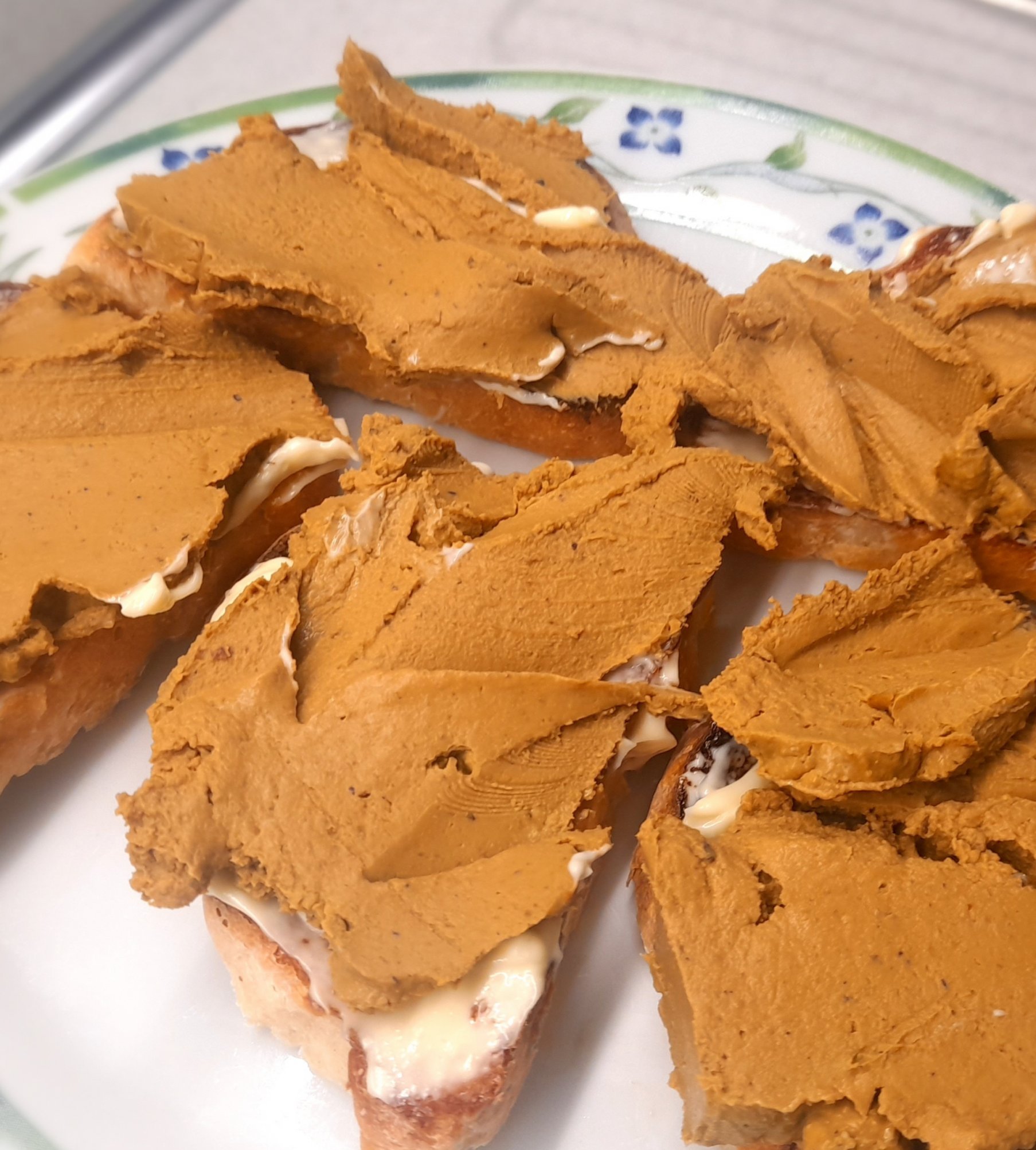 Домашни хляб с майонеза и пилешки  пастет от дробчета.