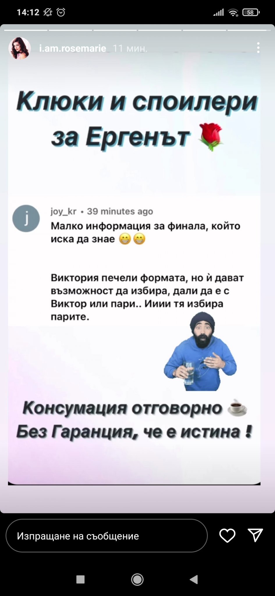 По-скоро снимката показва, че Дениз не е спечелила, и може би намеква, че Алекс  печели, ама дали... ще видим какво ще преценят да ни покажат накрая 😅
