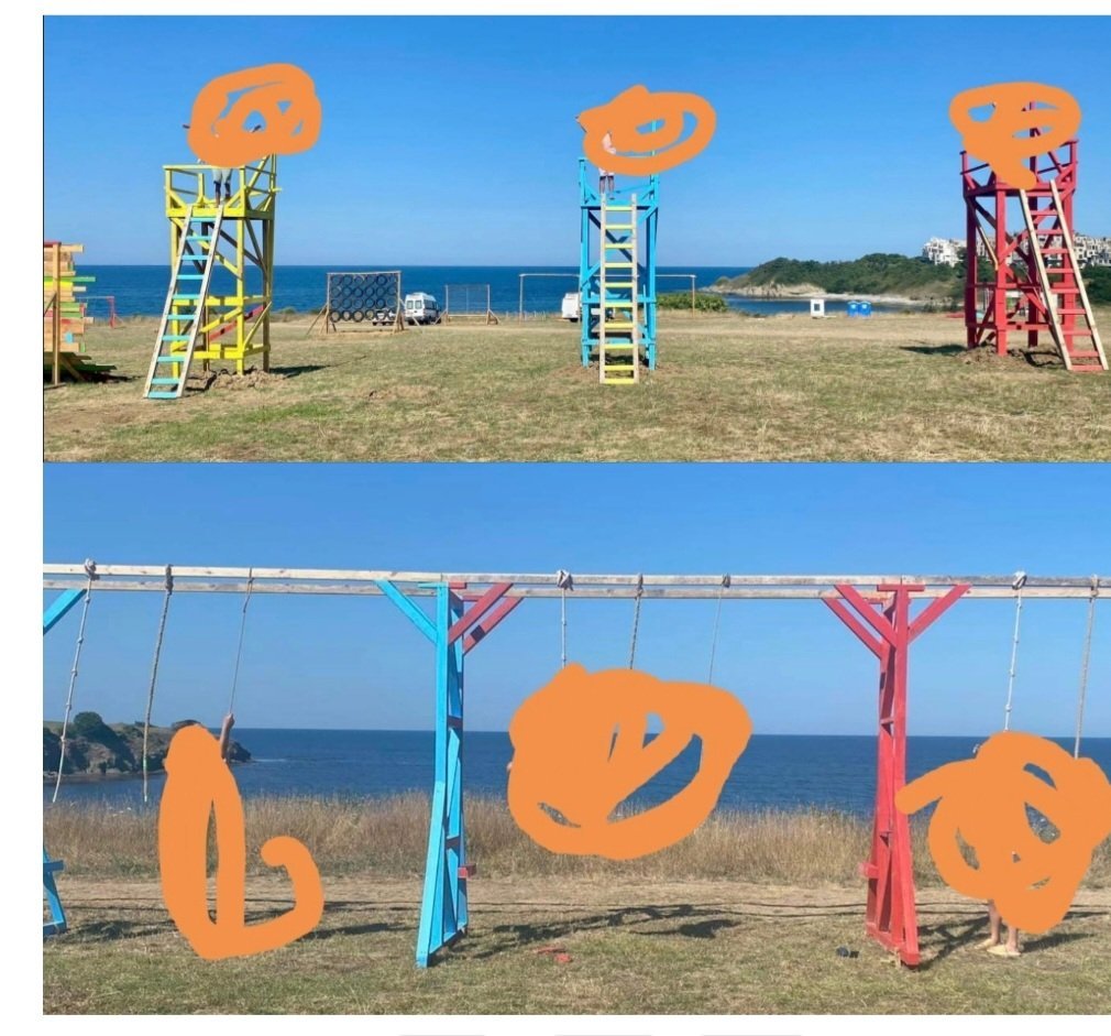 на Попския плаж,където снимат ,се виждаха някакви жълти и червени съоръжения.