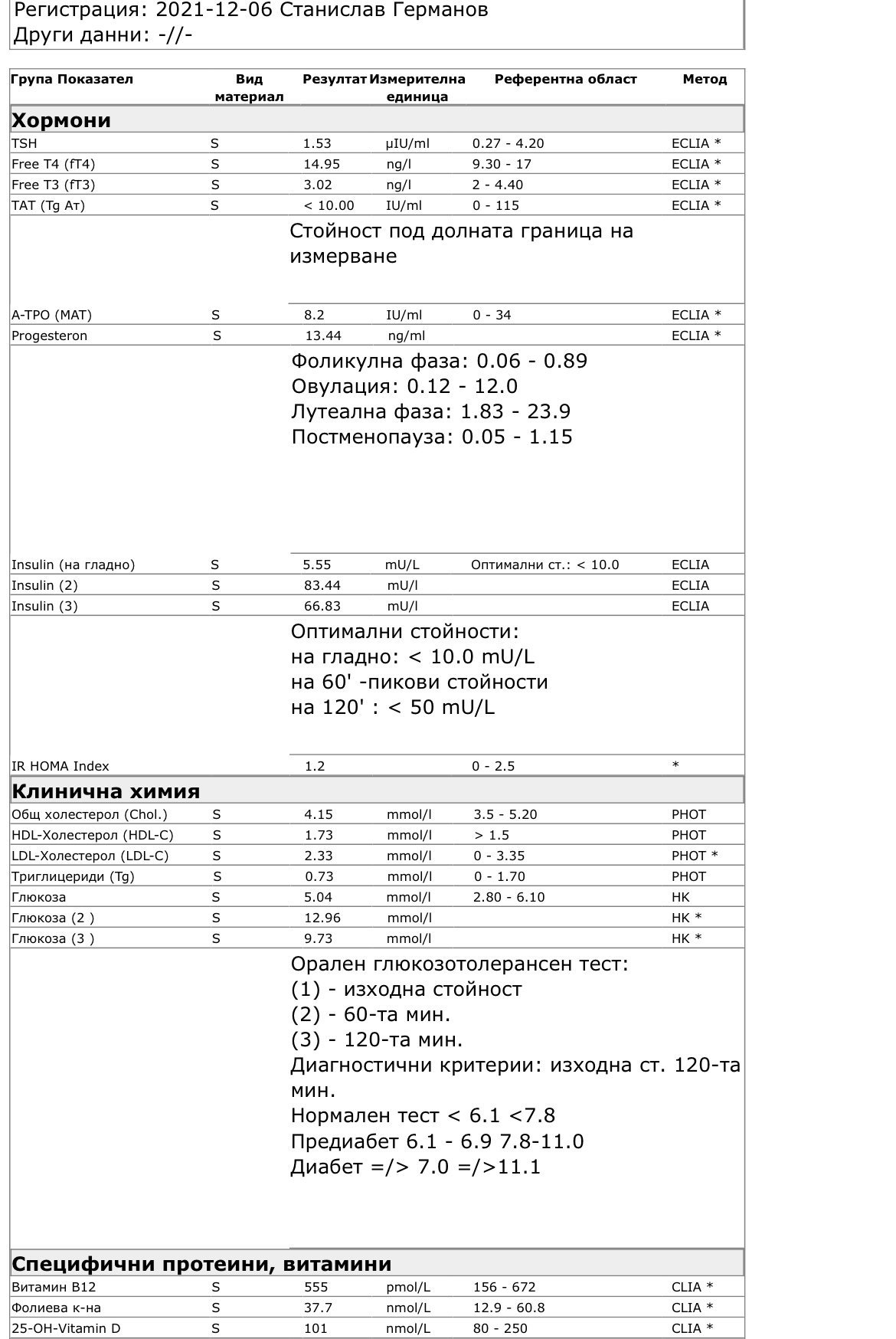Ще се радвам да ми отговорите на още един въпрос, тъй като изследванията направих на своя глава началото на декември, но успях да запиша час за ендокринолог чак за края на януари и се чудя има ли смисъл да ги повторя преди консултацията, предвид че съм след инвитро стимулация в декември. Също така ще ви помоля да споделите каква е подготовката преди обременяването, тъй като в две лаборатории чух различни препоръки, като например, че не било нужно да има отстояние от 12 часа без храна преди изследването и, че не е нужно да се седи в покой на 60 и 120 мин.