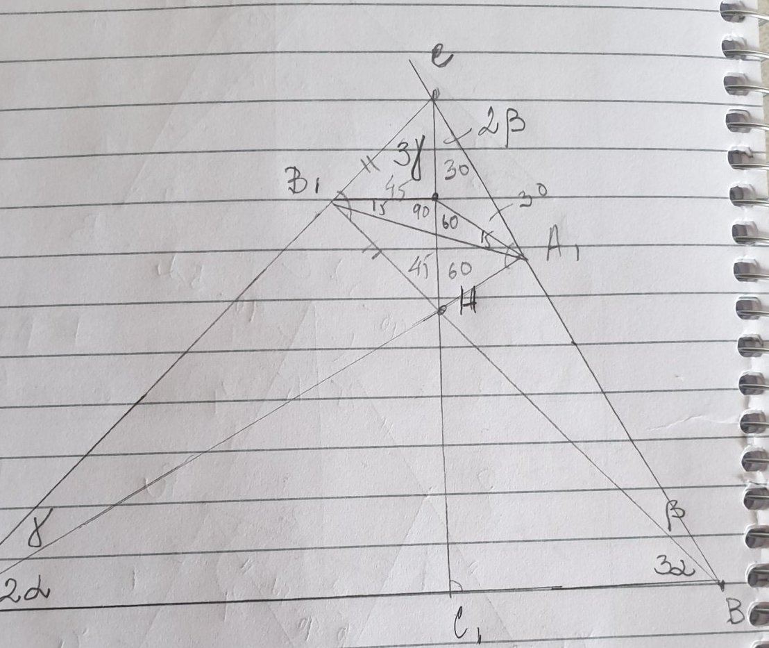 В. Разглеждаме триъгълници НВ1С и НА1С - и двата са правоъгълни с обща хипотенуза СН. Ако М е средата на СН то В1М=МН=СМ=МА1.