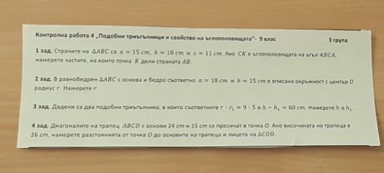 1. зад с=11 см се разделя в отношение 15:18 (дължините на другите две страни). 15:18=5:6