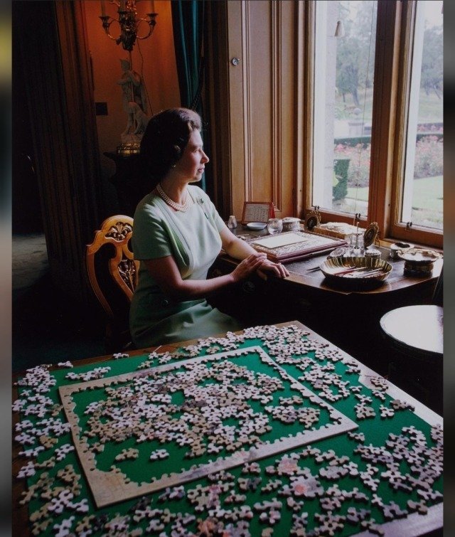 Така да сме всички - с кралска осанка, перлена огърлица и отделна маса за пъзели 😁