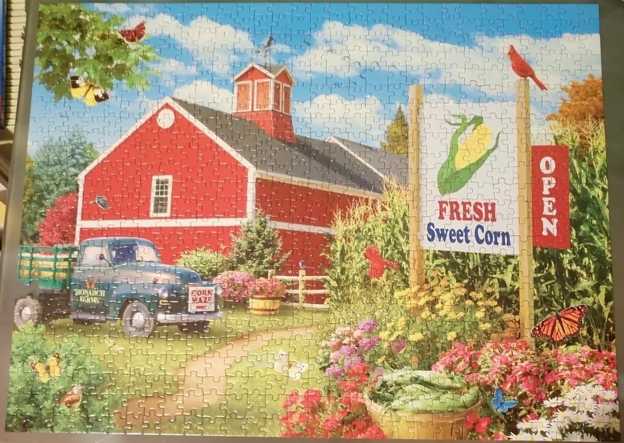 Ето пъзелът, на който наистина му липсва едно крайно, но не се трогвам толкова. Беше много хубав и лесен, направо детски, 750 части, скоро Джо ще го реди.