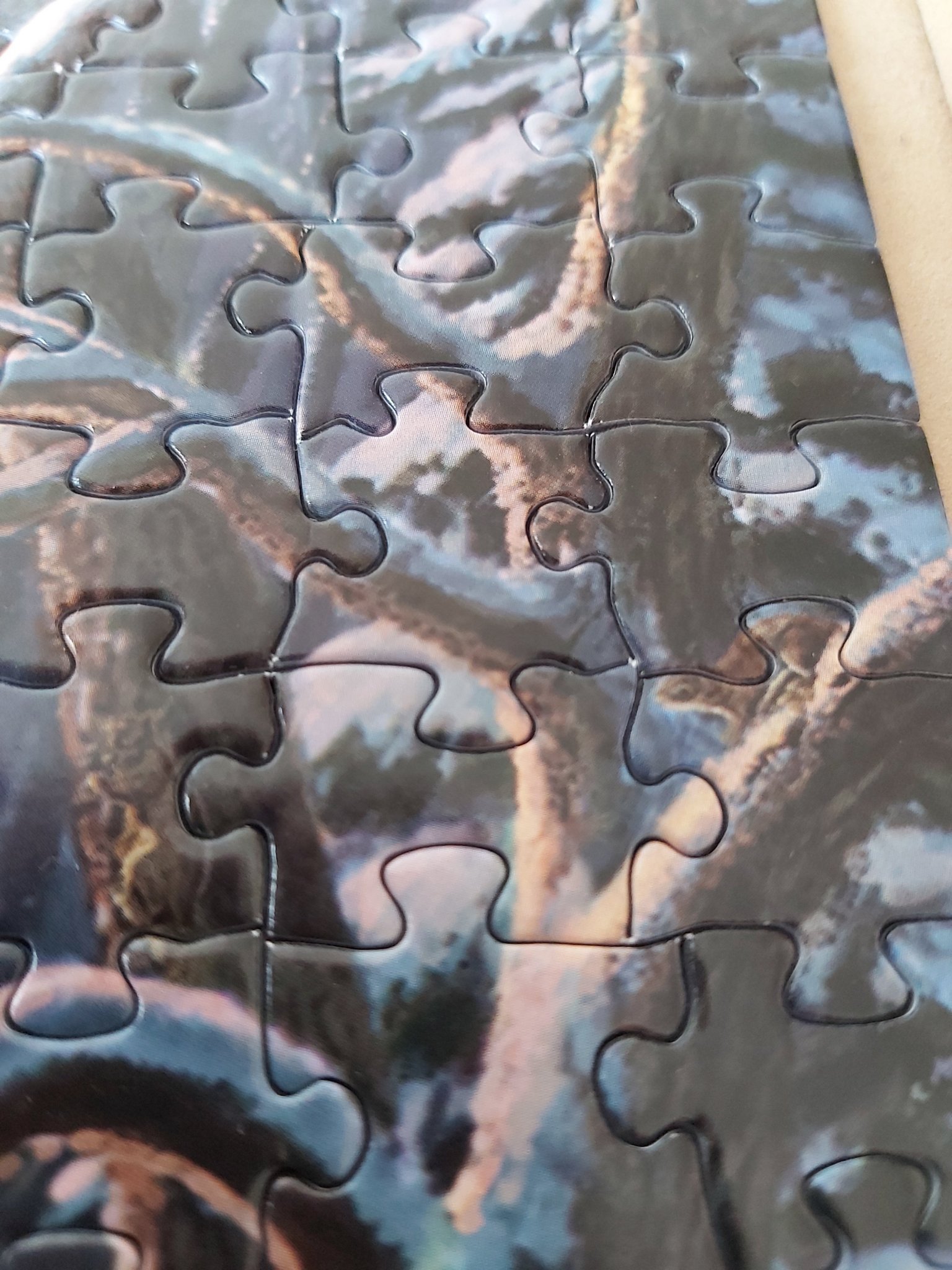 Много е красив и приятен за редене, затрудни ме единствено частта с клоните. Парчетата са с лъскаво покритие. Формата им е стандартна, но са много разнообразно изрязани, леко къдрави на места Simple Smile Нещо, което за пръв път срещам и много ми хареса - хоризонталните сглобки са с различен вид от вертикалните и така има пълна сигурност как трябва да се ориентира дадено парче, което много помага при реденето.