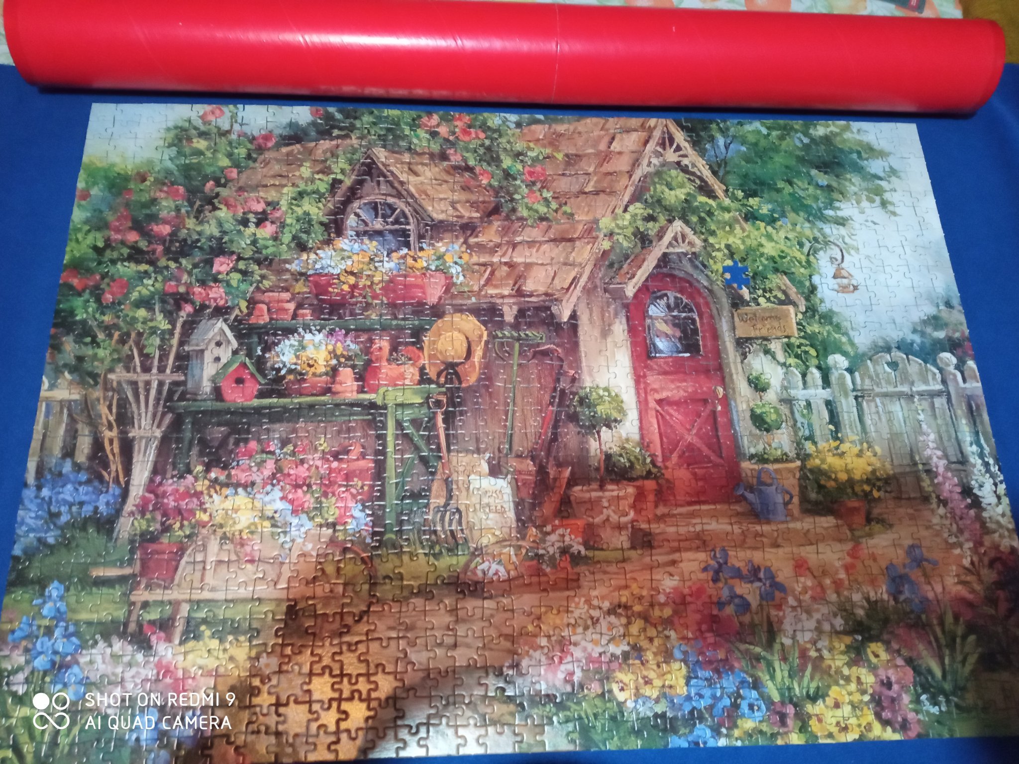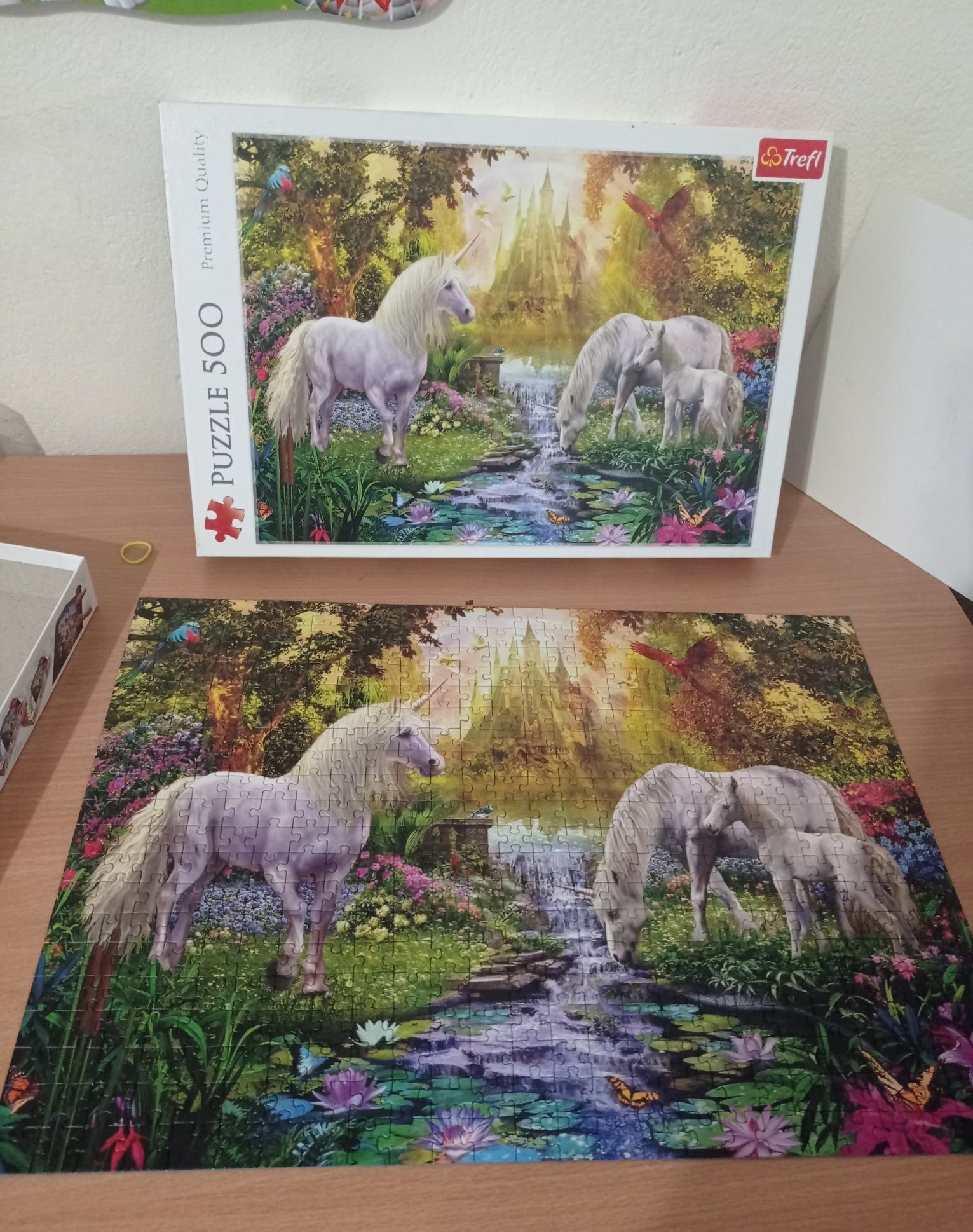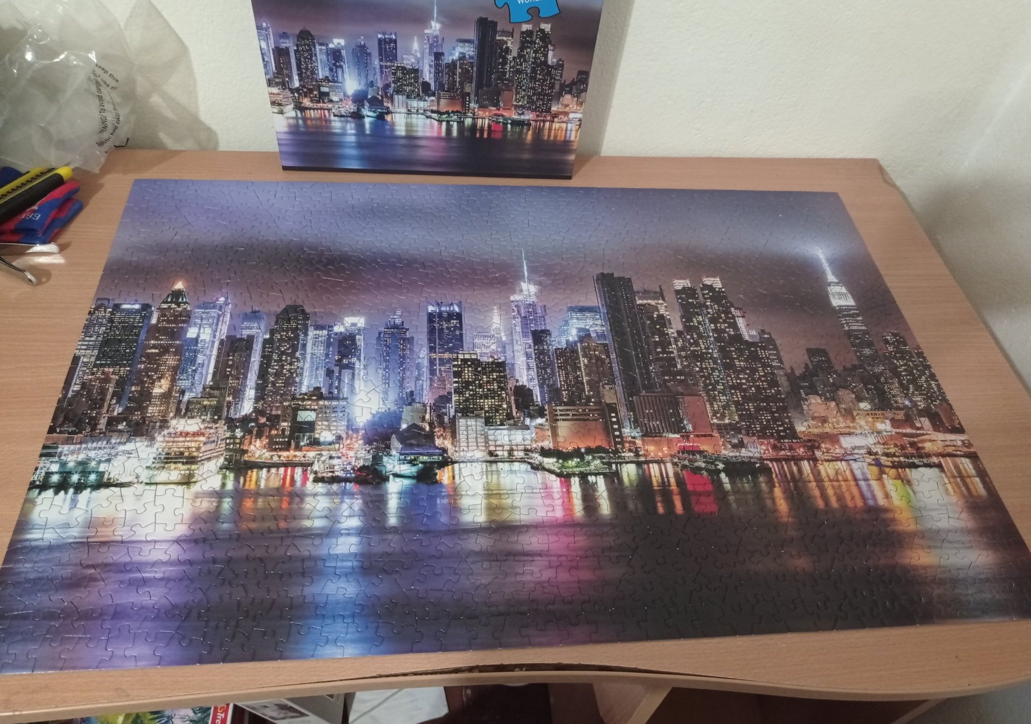По този повод ще се разделям с пъзела. Не обичам да ги лепя и рамкирам, а беше доста трудени няма да го редя пак. Накрая го завършихме като подредихме парчетата по форма и така следяхме къде какво може да пасне, защото сортирането беше почти невъзможно.