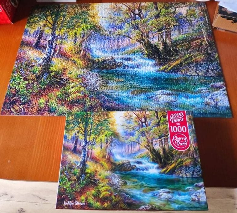В последните часове на отиващата си година успяхме да довършим един Чери Паци 1000 части. Честно казано не съм очарована от качеството. Наистина не е прашен, частите добре си съвпадат, дори може да се вдигне без да се разпадне много, но някак си самите части на парчетата, които влизат в другите парчета или стърчат малко над пъзела, или са под нивото на пъзела. А това мен ме дразни доста, защото и аз като някои от вас, много обичам да прокарвам ръка по наредената картинка.