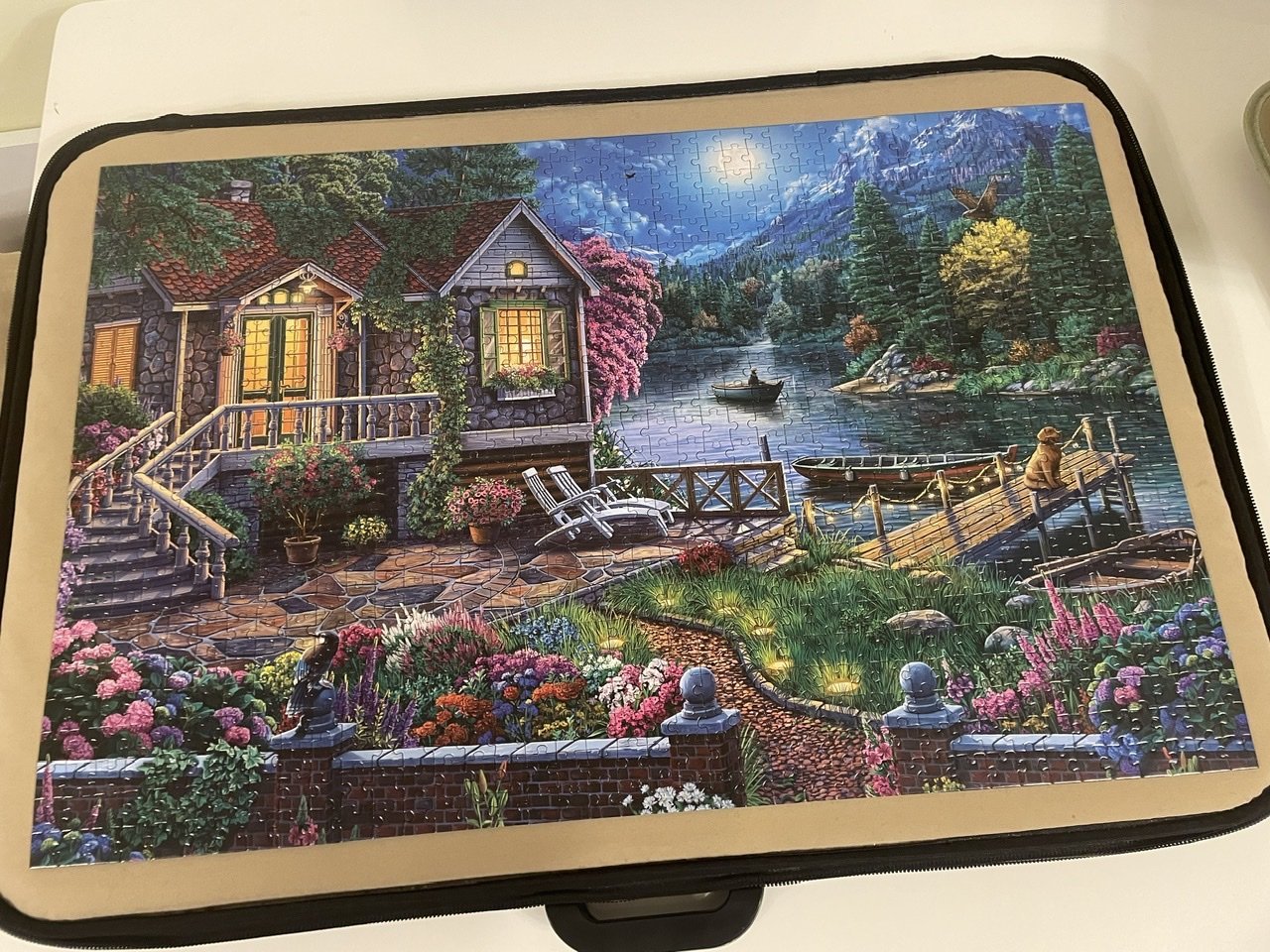 Първия пъзел за новата година. Започнат вчера и завършен днес. House by the Moonlit Lake, 1000 части на Corner piece.