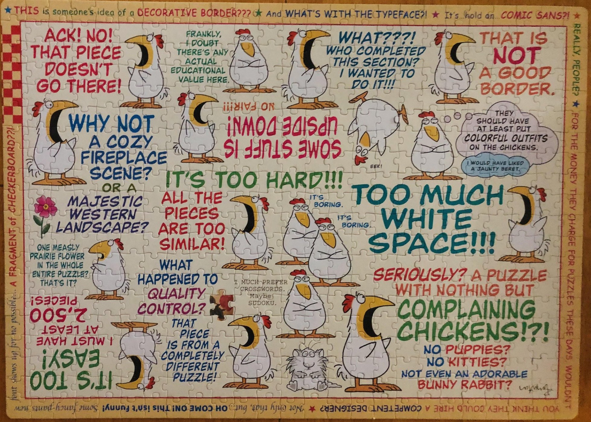 Прибрах се, смъкнах пъзела и заявих, че тази вечер ще го завърша. 3-годишното се обади "аз този пъзел искам пак да го наредим". WTF, тя една част не е сложила от него, никакъв интерес нямаше. Успокоих я, че има още 5 такива да направим ама не, тя си държи точно на този Joy