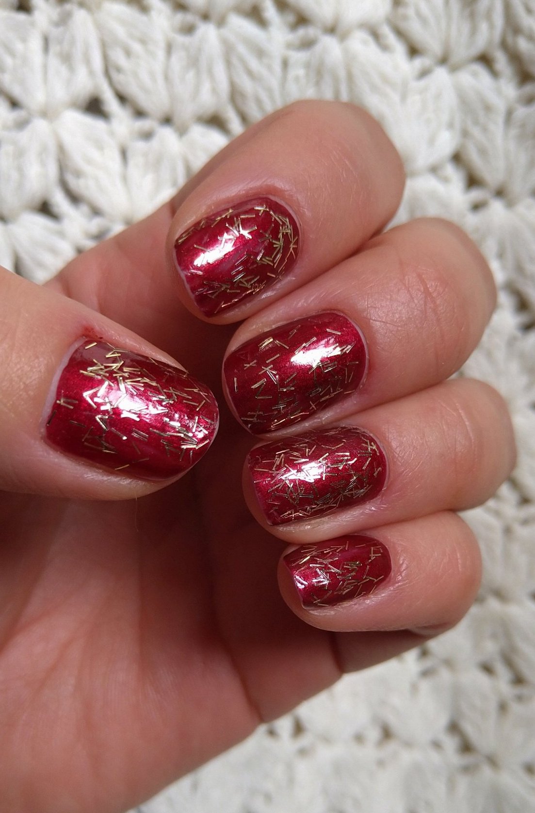 Сиена, Flake it се казва лакът, от снощи съм с него. 🙂 Някои наричат подобни частички флейксове. Сещам се само за един Перфект, който обаче вече е неоткриваем, не и за други лакове с точно същия ефект. Виждала съм в Али такива частички в кутийка, но по снимка не мога да се ориентирам дали не бяха по-големи. Има и златни люспички/фолио, но не са чак с този ефект на начупено стъкло. Но пак са много ефектни.