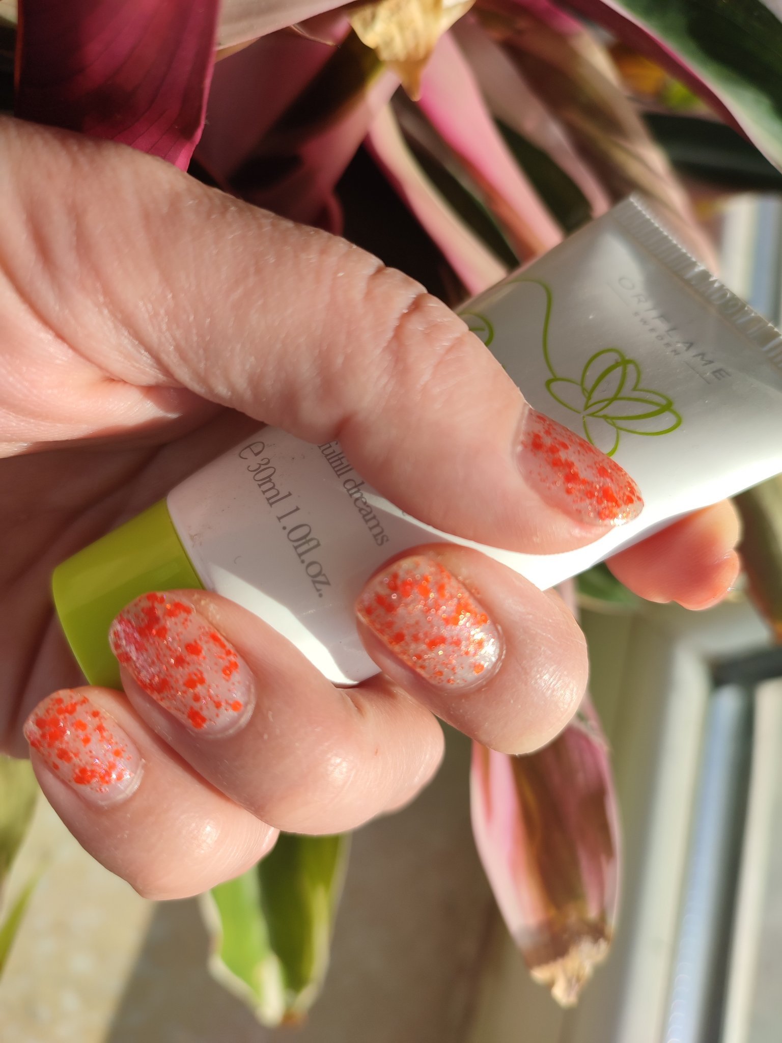 От известно време ви чета и се радвам на красотите, които показвате. Дълги години ходих само с безцветен заздравител за нокти, защото на моите нокти много бързо се разваля лака, но в последно време ми дойде музата да пробвам пак в цвят. Купих лак в цвят нюд и топлак на Еssence и учудващо  изглежда прилично до петия ден само с леко изтъркани връхчета на ноктите.