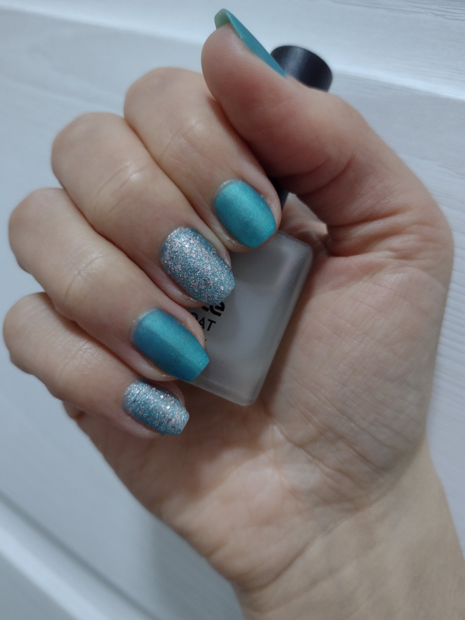 И при мен издържа доста матовия топ. Този конкретен маникюр си спомням, че издържа около 10дни тогава. Трябва и аз да го пробвам върху Essie да видя как е.