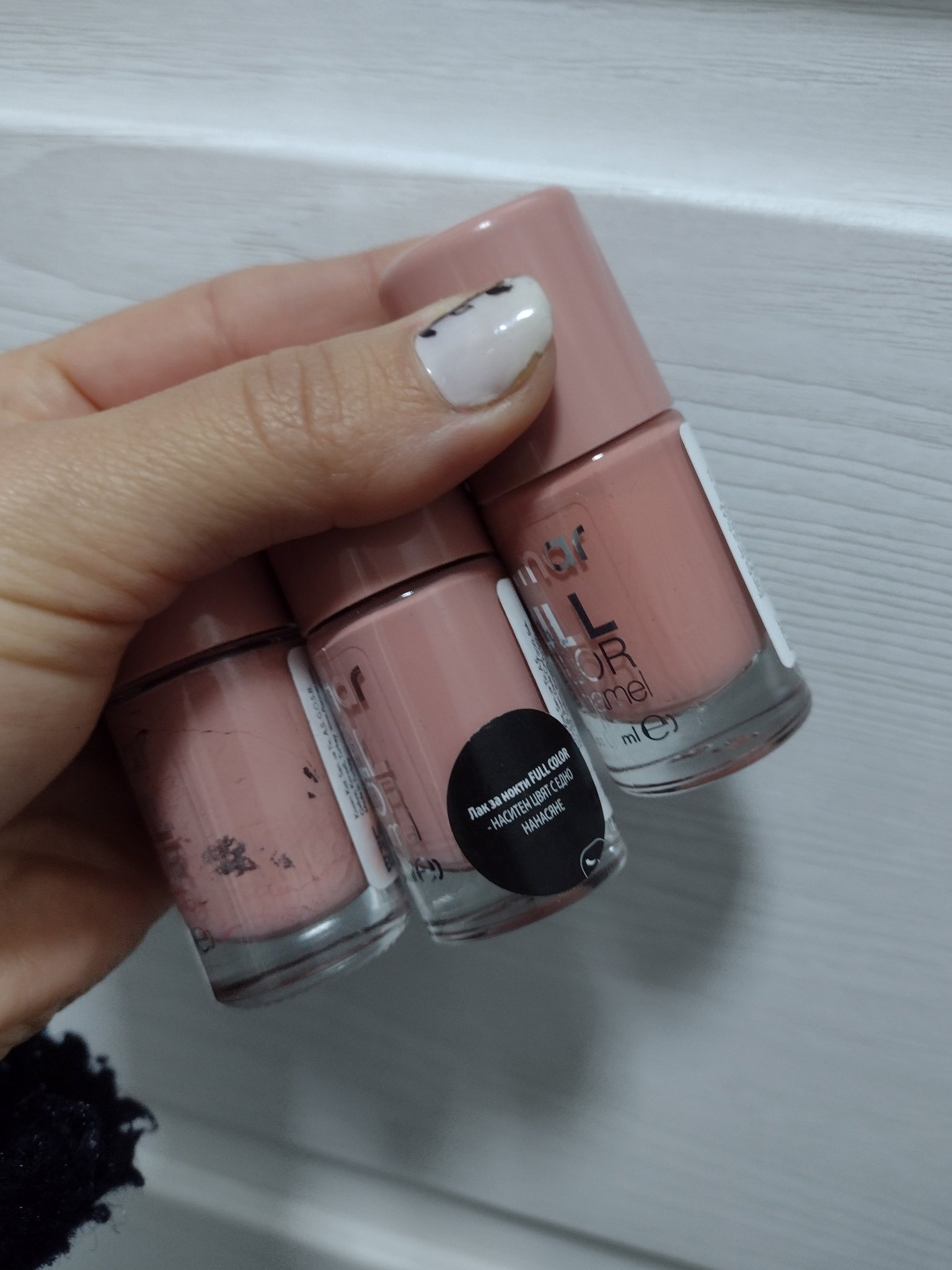 Днес видях, че имам 2 повтарящи се лака от комплекта на флормар, а не 3. Забелязах и разминаване на цветовете между един и същ номер.