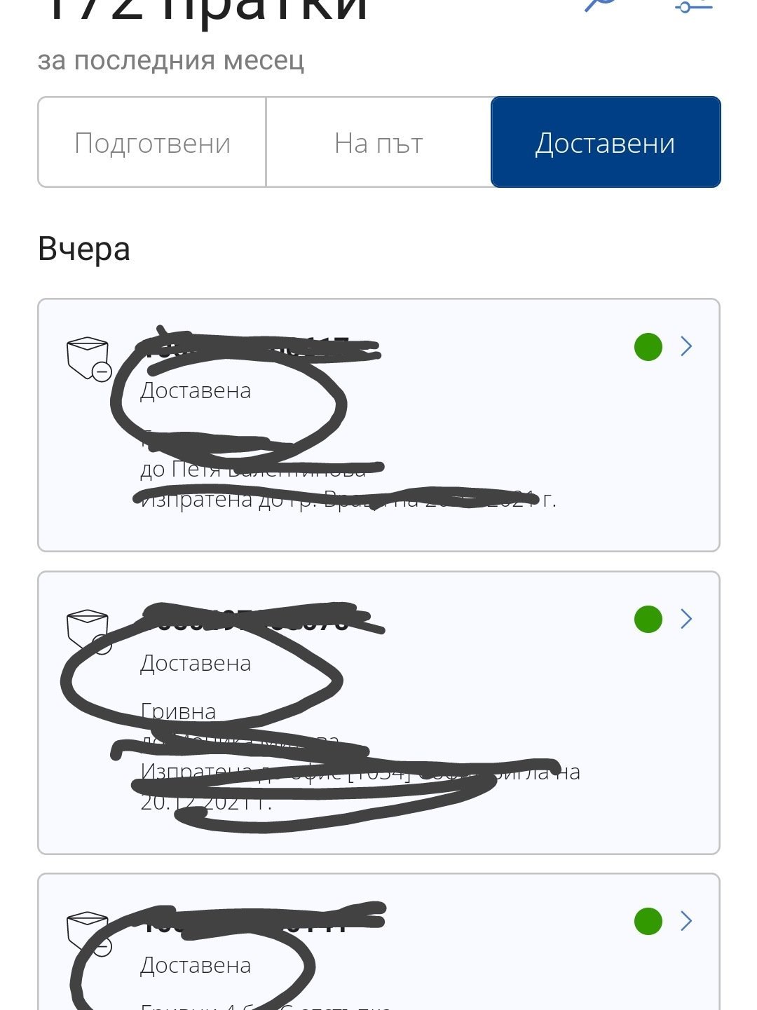 Не, само Доставена. Така ми изписва, когато клиентите ми са си взели пратките. В апликацията eecont