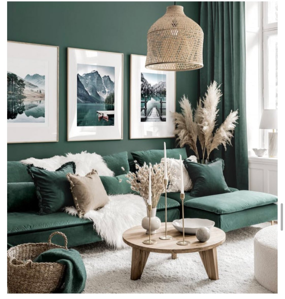 Маслено зелено, или тъмни към тревисто е супер, особено за къща, кореспондира с природата навън.Може да се съчеъав прекрасно със слонова кост, мноого бледо сиво: