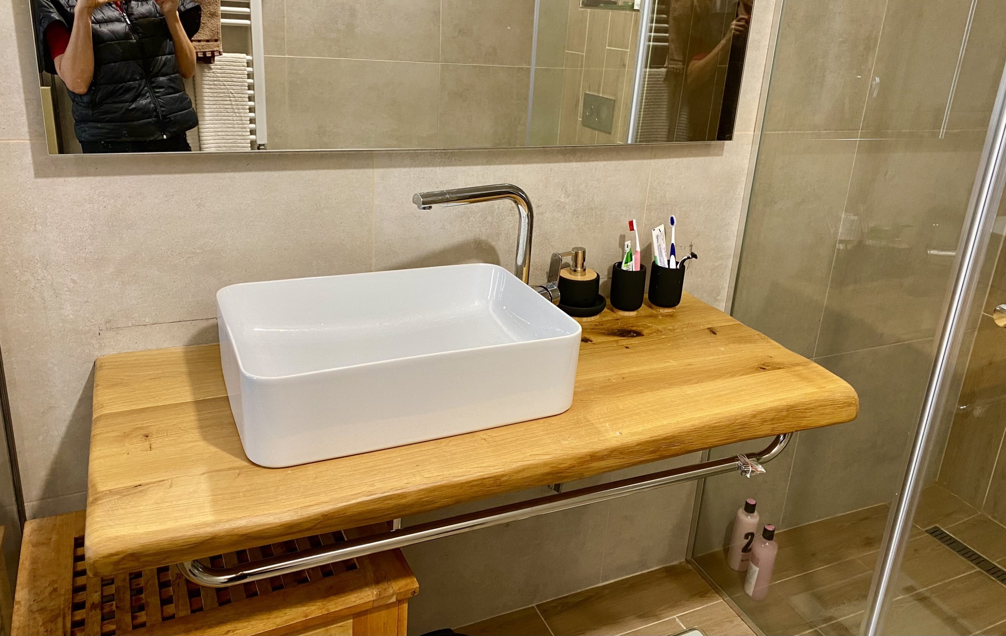 В банята имаме дървен плот под мивката - първата оферта беше 1200 лв, после го поръчахме за 600 на едно място. Дойде различен от това, което си представяхме и го върнахме. Накрая ММ се ядоса, поръча на един дърводелец от конкретно дърво в точен размер да му го изреже и после сам го лакира и импрегнира. Излезе 250 лв