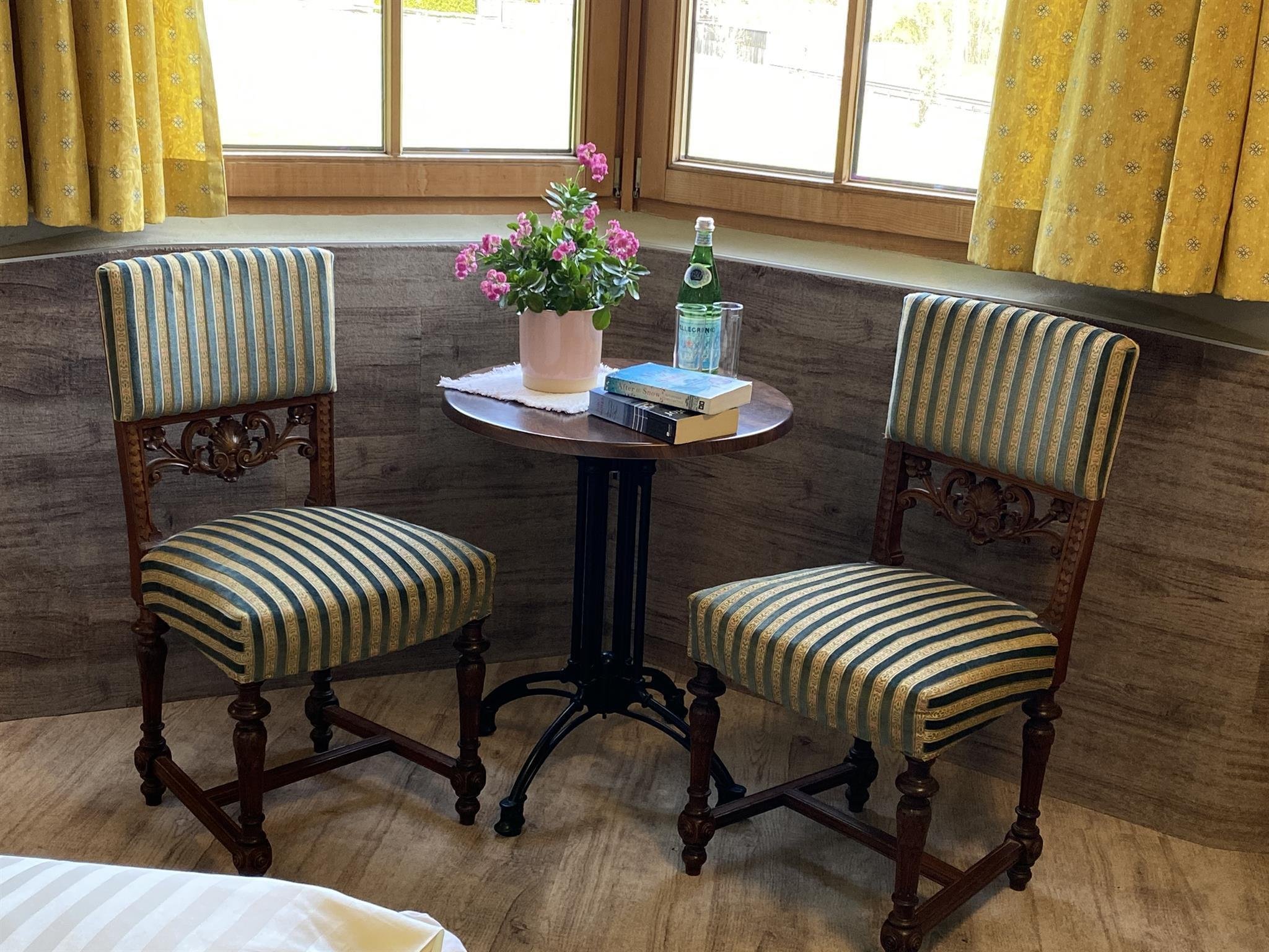 Със столчета, тапицирани, също май ще стане и малка маса.