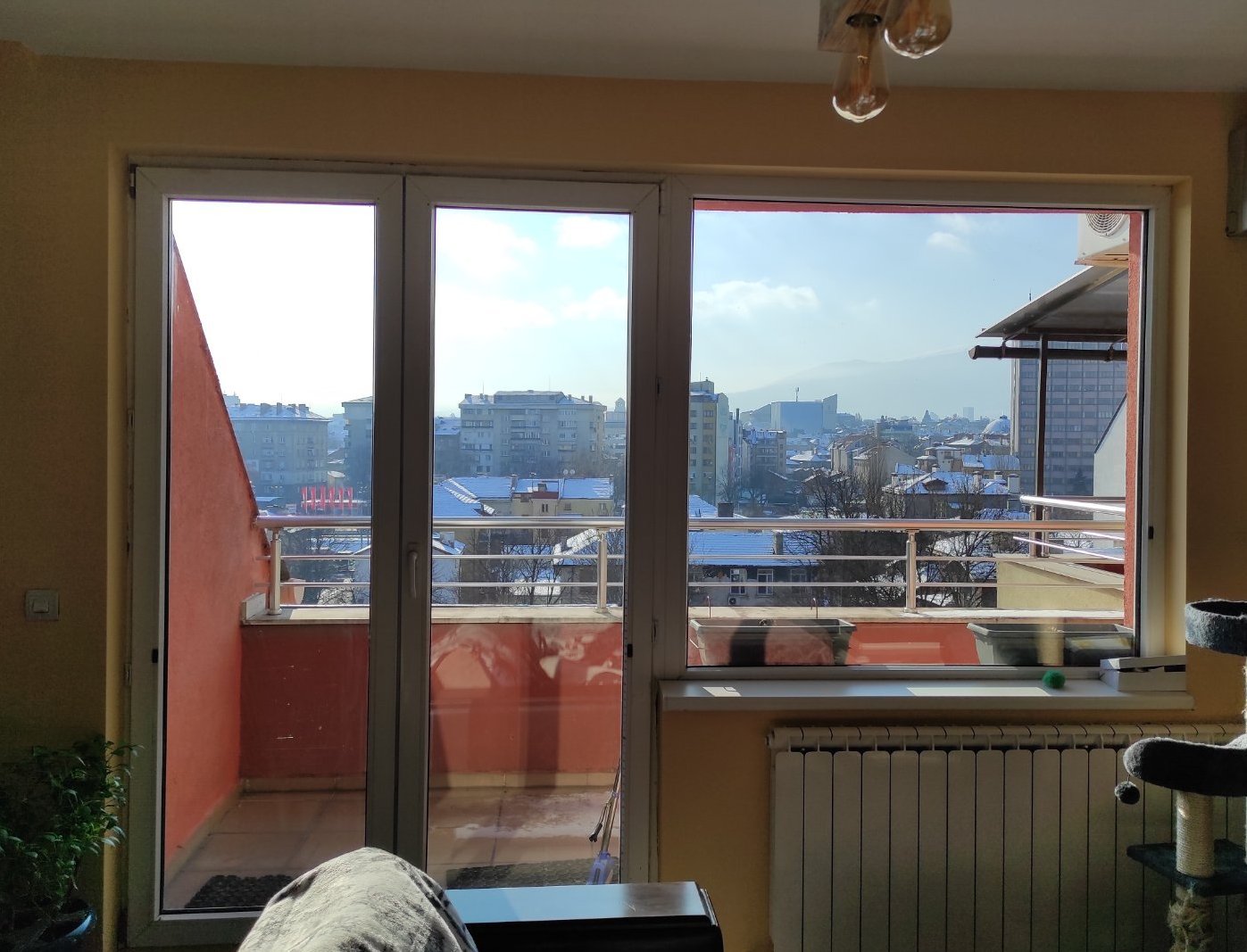Здравейте, момичета, досега не съм се включвала по темата, но ви следя с интерес. Скоро се нанесхме в ново жилище. По прозорците имаше навсякъде тъмно кафяви алуминиеви щори, които махнахме с влизането. Апартаментът е южен с прекрасна панорама към Ал. Невски и Витоша, но ми е трудно да реша какво да измисля за прозорците на хола. Така изглеждат в момента: