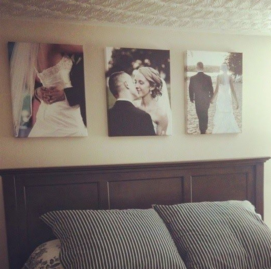 И аз бих избрала канвас за картините - снимки над спалнята. Идеята е чудесна, ако имате такива красиви снимки. С Бяла рамка също ще стане добре, но вибрацията е съвсем друга.
