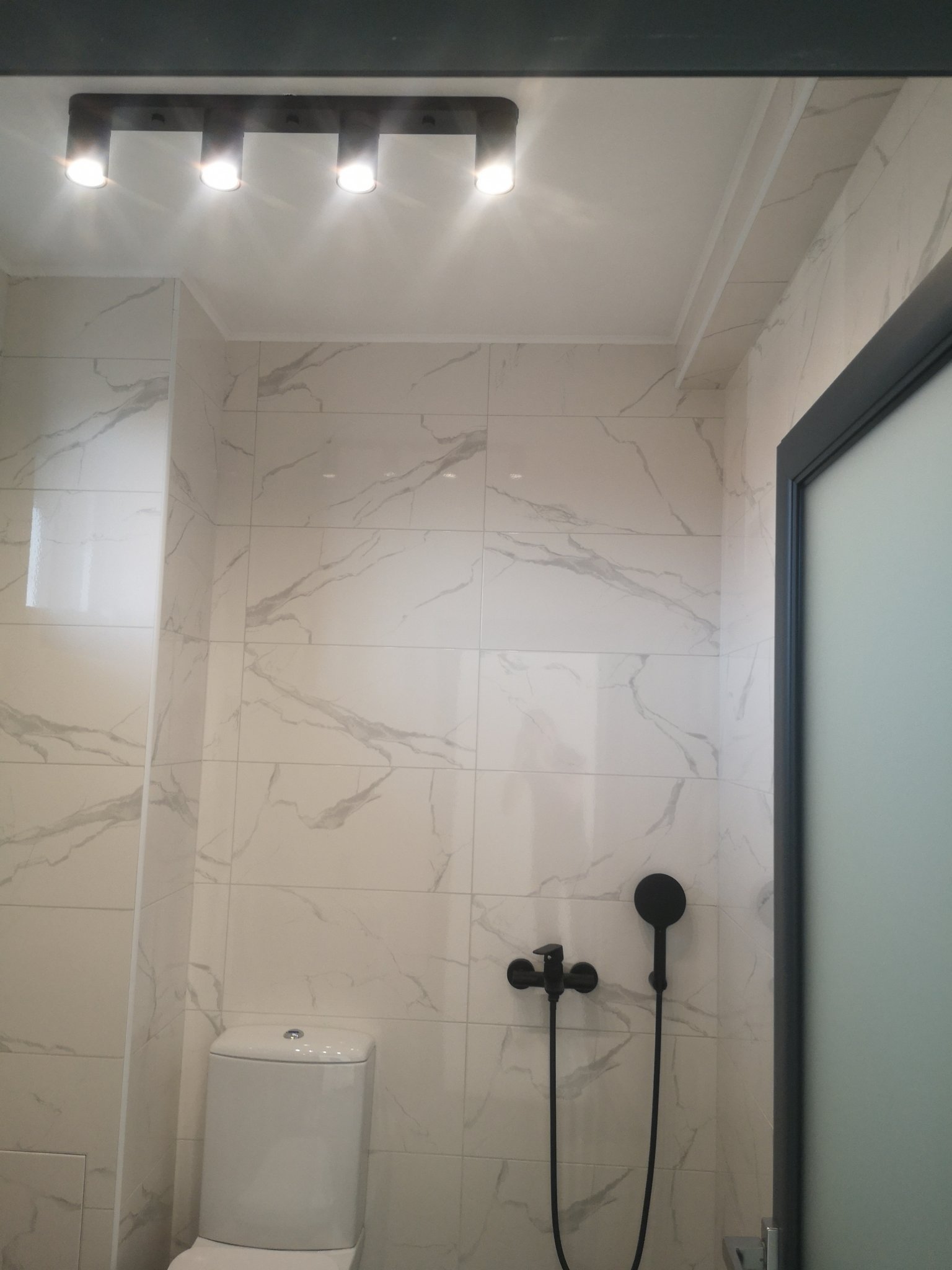 Лампата е от икеа, не е за мокро помещение, но тавана е доста висок, а и тази баня няма да се ползва за къпане. По-скоро е само тоалетна на етажа.