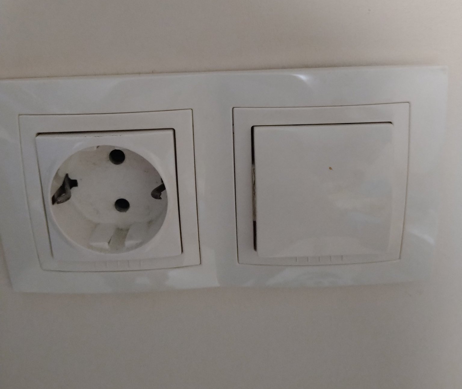 Странното разположение на ел.контакта е заради дефект на кутията и за да не я сменяме.