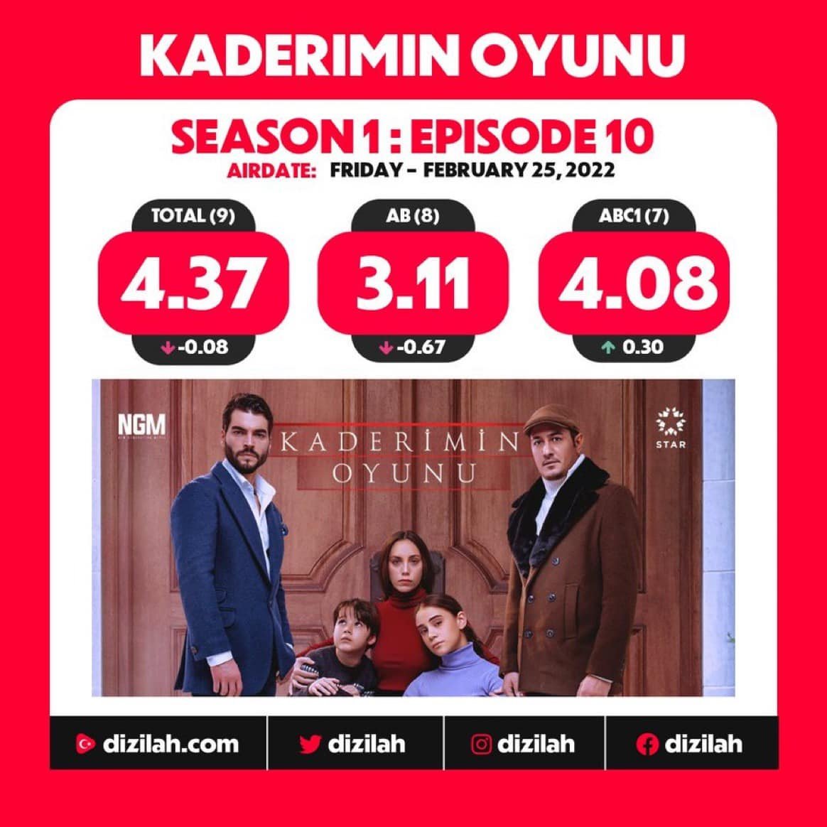 Имайте предвид, че за да бъде поредицата печеливша, нейният рейтинг трябва да бъде 5-8%. Сериите, които са под границата от 5%, носят само загуби на канала и това е само случаят със сериала „The Game of My Destiny“. Въпреки това, в същото време каналът все пак решава да поднови нерентабилния сериал за втори сезон. Това е възможно само ако телевизионният канал има права за чуждестранни продажби и по този начин компенсира загубите си от показване в Турция.