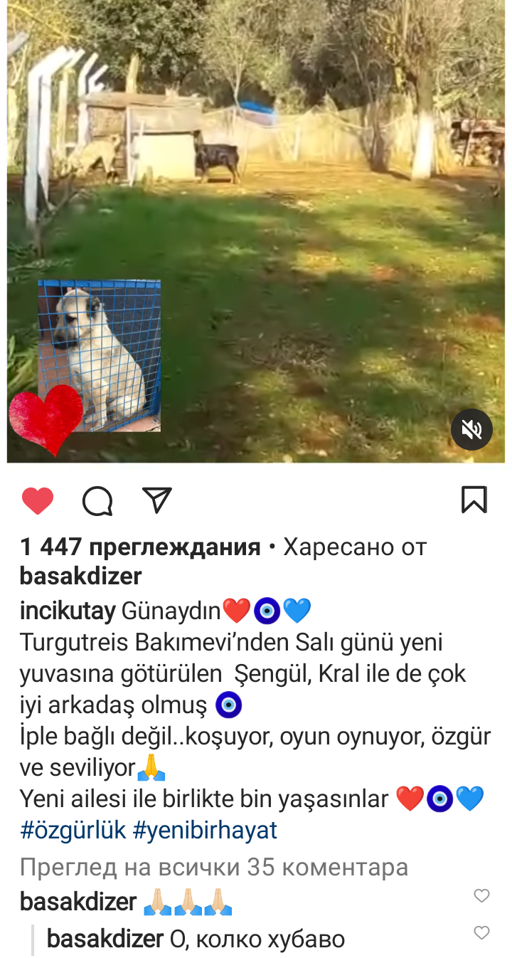 "От IG на Inci Kutay ни съобщават чудесната новина, че кучето,