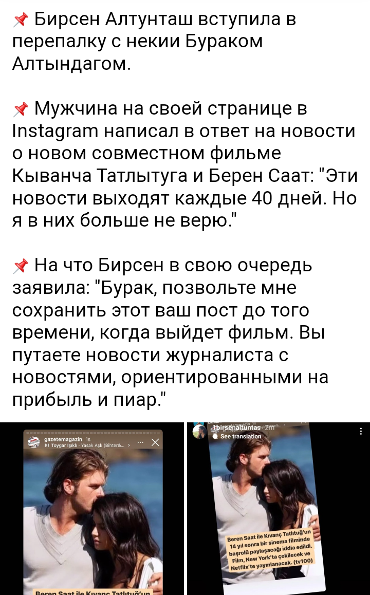 думите на Бирсен-  "Бурак, позволете ми да запазя този ваш пост до момента, в който филмът излезе. Бъркате новините на журналист с новини, които са фокусирани върху печалбата и PR."