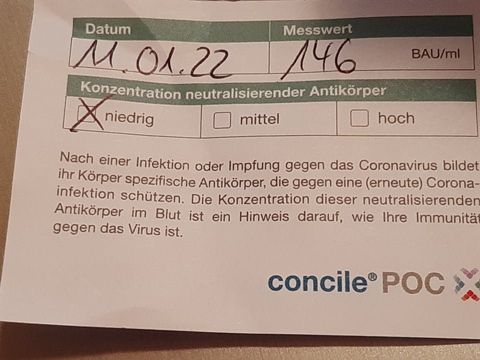 Слънце, аз  изкарах Ковида през м. ноември 2020г. Три месеца след това, в края на м. февруари 2021г, отидох и аз като теб да си направя тест за количествено натрупване на антитела. Резултатът ми беше някъде около 300. Направих го при моя приятелка, която работи в кръвопреливния център. Тя също ми каза, че са малко. Попитах я, защо така, нали само преди 3 месеца съм го изкарала, а тя ми отговори, че това било много индивидуално. Предполагах, че е от това, че не съм го карала много тежко. Но и това нямало значение. Тогава тя ме посъветва да се имунизирам, за всеки случай. Послушах я и вече си сложих дори бустерната инжекция. Засега съм добре, пък да видим.