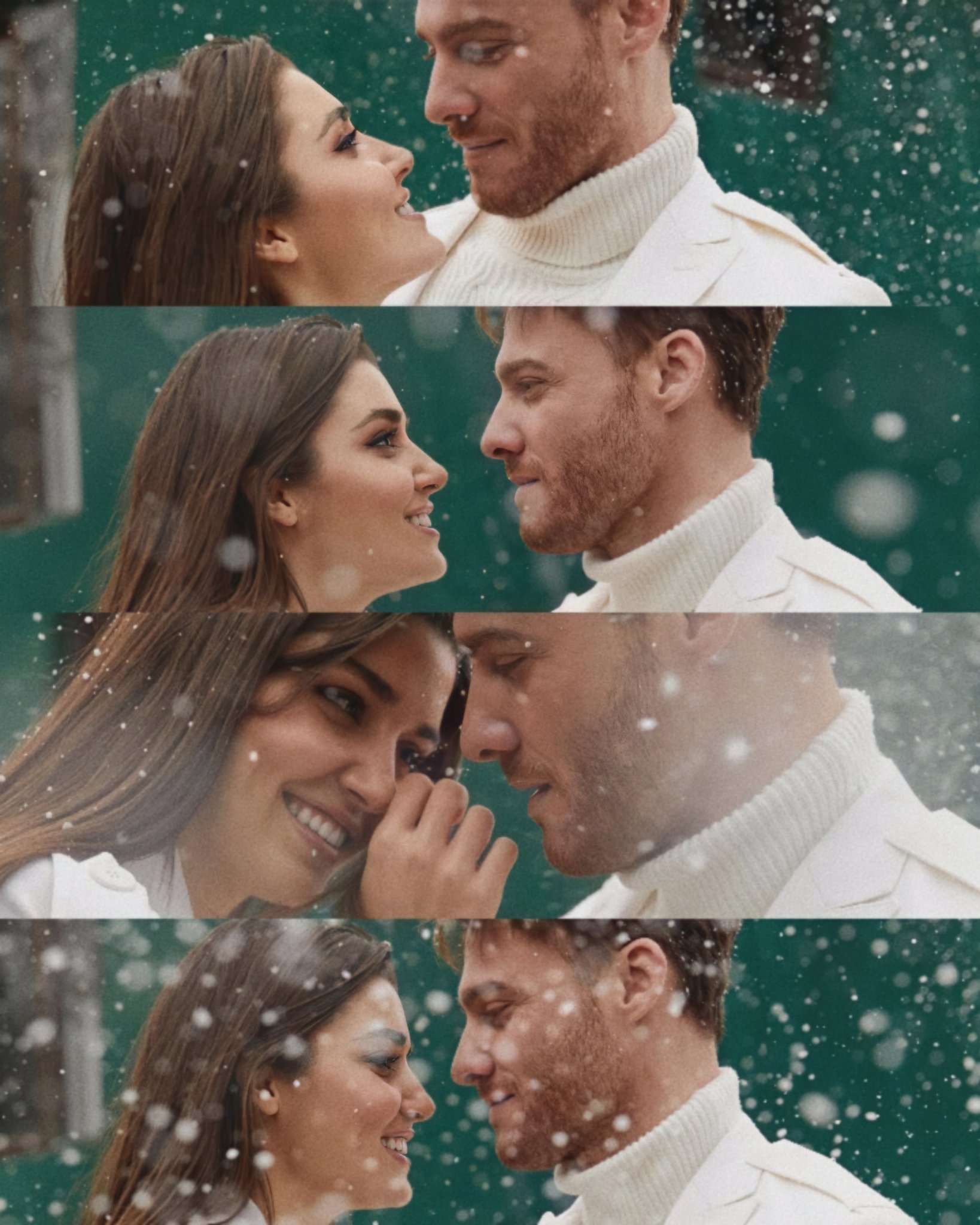 Колко много й личи на Ханде, че има нужда от този страхотен мъж... ❤️ Нежно гушкаща се в него,  жадна за мъжките му обятия, притворила клепки в сладък унес, притиснала се до силната му гръд, намирайки най-мечтания "подслон" за своето притихнало от любов сърце... Наистина,  един от най-впечатляващите като емоция фотос, запечатал без думи онова вълшебно тайнство,  наречено простичко с една дума - ЛЮБОВ😍