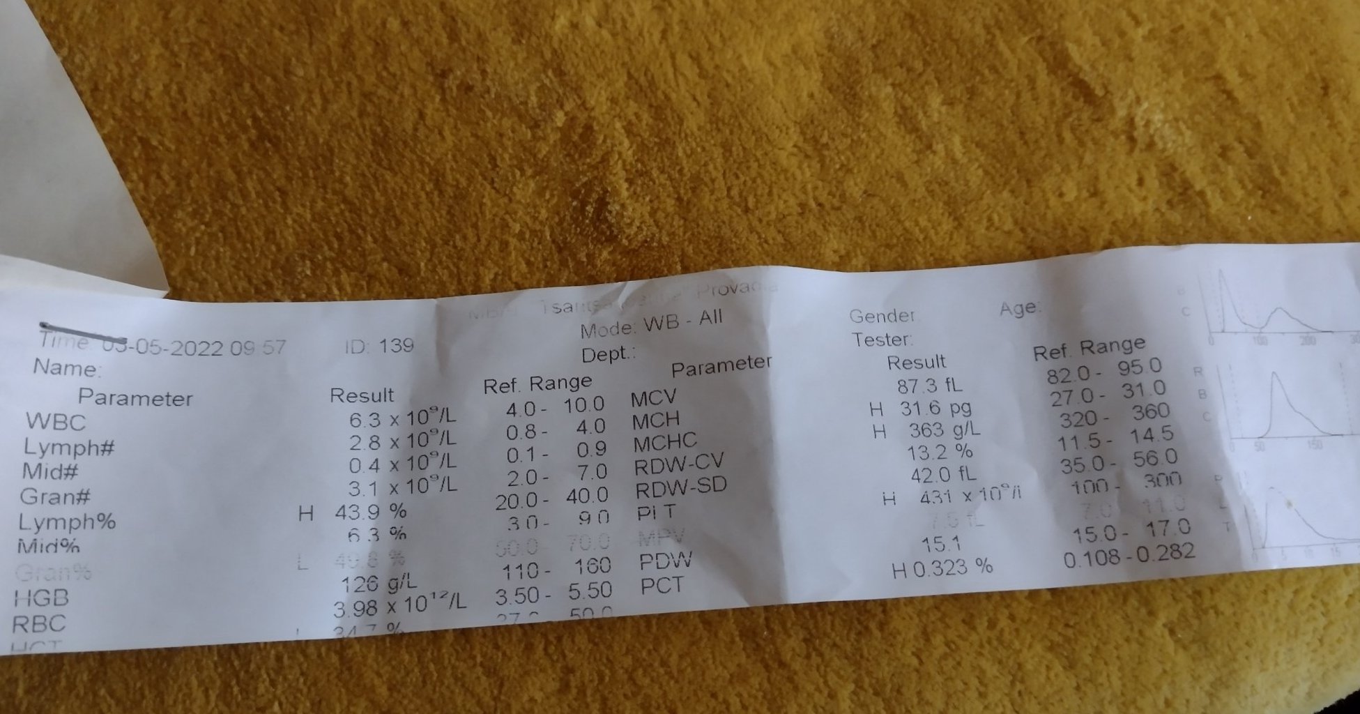 Майка ми дава кръв на 28.04. за ПКК в градската лаборатория (не София), която ПКК излиза на същият ден с нормални резултати, но понеже е искала ДКК (Не машинно, което се извършвало само в София), изпращат кръвта и до София. Престояла е тук в Бодимед-София от 28.04 до 3.05 (днес) и резултатите на една и съща кръв в две различни лаборатории са коренно различни!
